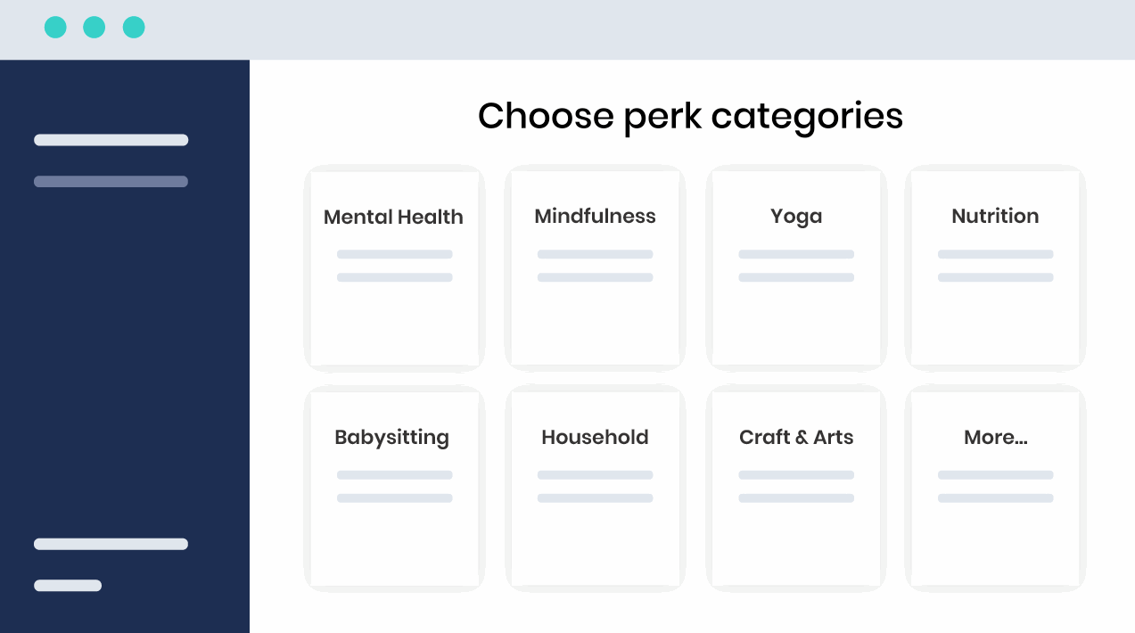 Let your employees choose from the best offers around mental health, fitness, nutrition & household support. Our perks are specifically tailored to new remote work realities.